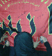على راية حمراء حملت شعار (يا زينب) تخط الفتيات في فوج حي الراهبات/النبطية في جبل عامل الثانية رسائلهن العاشورائية ..