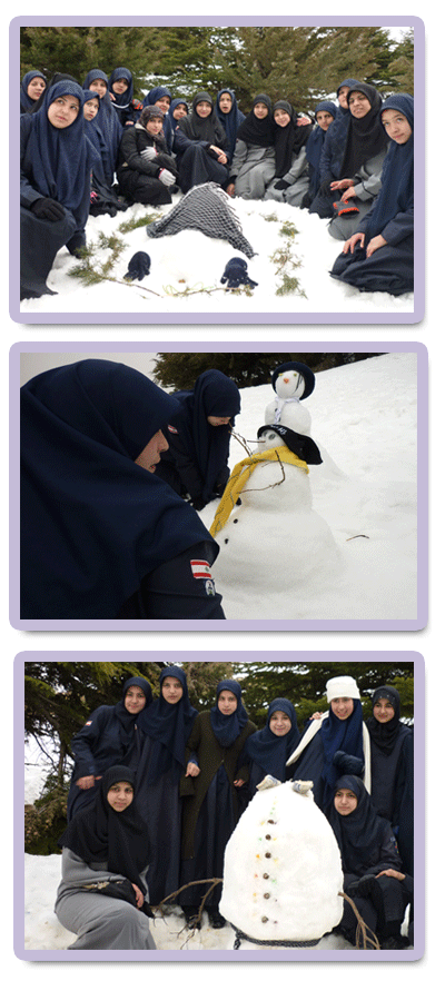 في عقولهنّ إبداع وإبتكار وفي قلوبهنّ عشق السيدة زينب عليها السلام.. هنّ قائدات ودليلات القطاع السادس.. ولأن جمعية مرشدات المهدي عجل الله فرجه هي الأم الحاضنة لعقولهنّ وقلوبهنّ أطلق القطاع السادس - مفوضية بيروت مسابقة أجمل رجل ثلج على بياض ثلج فالوغا.. المسابقة التي شارك فيها ثلاثة من أفواج المرشدات في القطاع تناول معايير الإبداع والإلتزام بالوقت وجمال رجل الثلج.. بعد إطلاق صافرة البداية إنشغل الجميع ببناء رجال الثلج وقد استعملوا الأعمال الريادية واللوازم التي أحضرنها معهنّ لإكمال زي رجال الثلج وخلال نصف ساعة أنهت الأفواج رجالها فكانت الزهرة والدليلة ورجل الثّلج السّاجد وآخر يقف على رأسه وهنّ الآن ينتظرنّ إعلان النتائج..