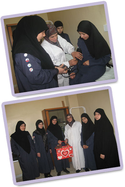 الدليلات بعدها هديّة رمزيّة للممرضة في عيدها بعد أن ودعنها شاكرين لها حسن