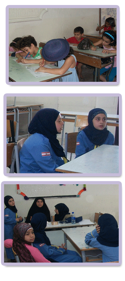 في سياق الأندية الصيفية اقام فوجي ام البنين(عليها السلام) والمعصومة (عليها السلام) القطاع الرابع مفوضية بيروت ورش تربوية وكان العديد 31 مرشدة كشفية وذلك يوم الاثنين 02/07/2012 في ثانوية الغبيري الثانية للبنات، وكانت الاجواء مميزة.