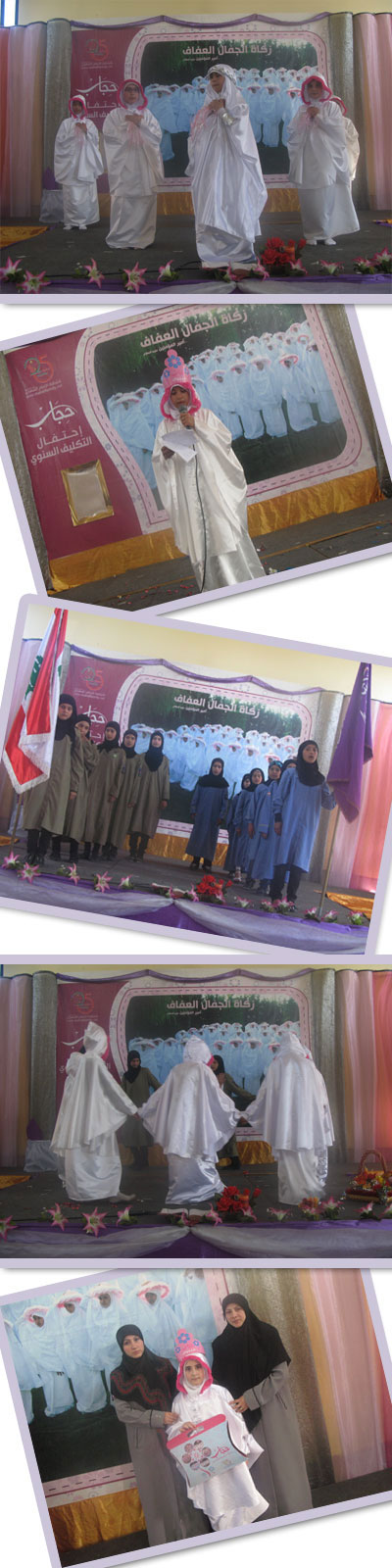 زهرات من نور فاطمة اقتبسن الحياء...ومن طهرها اكتسين فأصبحن مصونات عفيفات.أقام فوج السيّدة الزهراء (عليها السلام) _قطاع قانا في مفوّضيّة جبل عامل الأولى حفل تكليف لزهراته اللّواتي بلغن سنّ التكليف الشرعي.الحفل الّذي تلوّنت فقراته ما بين تعظيم للقرآن،وأناشيد من وحي الحجاب،فمسرحيّة حاكت واقع الحجاب إختتم بتوزيع الهدايا على المكلّفات.