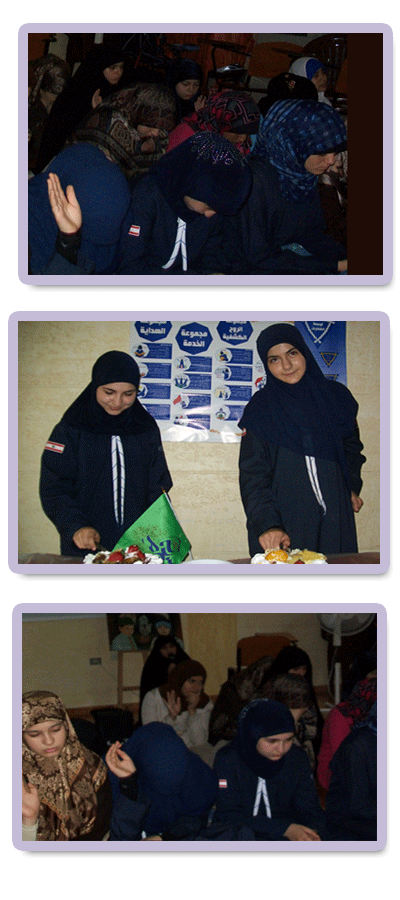 إنه النور المنبعث من خلف السحاب ,إنه الأمل الموعود ,إنه بقية الله الأعظم (عجل الله تعالى فرجه ) منقذ البشرية، مع بزوغ يوم الخامس عشر من شهر شعبان يوم ولادة صاحب العصر والزمان ( عجل الله تعالى فرجه ) أرواحنا لتراب مقدمه الفداء أقام القطاع الرابع- بيروت لدليلاته نشاطا" بمناسبة الولادة الميمونة تخلله فقرات متنوعة وكانت الأجواء الروحية عالية جدا" ارتسمت على وجوه الدليلات وكان مجمل الحضور 24 دليلة كشفية وذلك بتاريخ 6/7/2012.