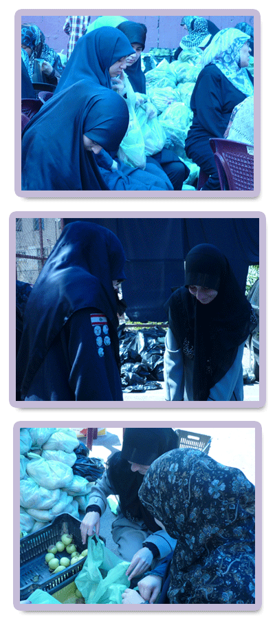 هي دليلة المهدي عجل الله فرجه.. سارت على نهج الأئمة الأطهار (عليهم السلام) فتعلمت منهم مساعدة المحتاج وخدمة الناس.. ففي إطار أنشطة خدمة المجتمع ساهمت 11 دليلة و3 قائدات من القطاع السادس لمفوضية بيروت بتحضير حصص خضار لتصبح جاهزة لتوزع على الفقراء والمساكين في شهر رمضان المبارك فكان لهنّ الأجر والثواب.