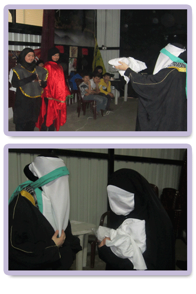 ويستمر العزاء ومعه يستمر الاحياء العاشورائي في فوج نور السيدة الزهراء (عليها السلام ) القطاع السابع مفوضية بيروت ففي اليوم الثاني عشر من محرم الحرام نفذت فرقة المرشدات في الفوج مسرحية تناولت مصرع الطفل الرضيع واختتم النشاط بمسابقة عاشورائية ولطمية حسينية حضر الإحياء 85 مرشدة كشفية وذلك في خيمة بقية الله .