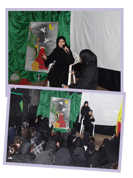 حضرت الفقرة المسرحية بقوة في المجالس العاشورائية للمرشدات في الزرارية في منطقة جبل عامل الثانية،الفقرة التي كانت تقدّم يومياً في الإحياء تنقل للفتيات أحداث كربلائية وسيّر تكون على أساسها أسئلة المسابقة العاشورائية التي كانت تتسابق المشاركات في الإجابة عليها.