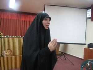 مفوضة المرشدات العامة ألقت كلمة في المناسبة، حثّت فيها المشاركات على ضرورة الإلتزام بخصال وسلوك القارئة المتّزنة والمقتدية بالسيدة زينب(ع)، وأكّدت فيها على أهمية الرسالة التي يحملنها باعتبارهن قدوة في المجتمع.