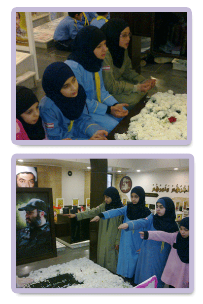 بزيارة لروضة الشهداء ..... وزيارة ضريح الشهيد القائد عماد مغنية حيث تم تجديد العهد بالاستمرار على النّهج الذي رسمه لهن وذلك بحضور 25 مرشدة كشفية..