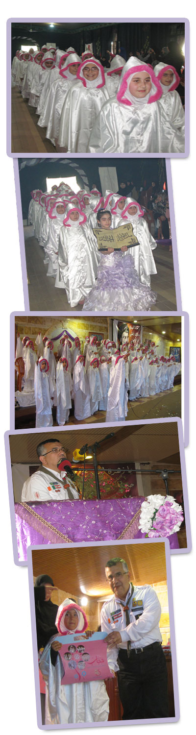أقحوانات الرّبيع تفتّحت براعمها... ليفوح شذا أريجها، أثقلت أوراقها قطرات النّدى، لتبلّل جفا السنين بأبهى حلّة...فبرعاية مفوّض العلاقات الدوليّة في كشّافة الإمام المهدي عجلّ الله تعالى فرجه الشّريف، أقام قطاع الخيام في المنطقة الأولى حفل تكليف لـ 84 فتاة من فتياته الّلواتي بلغن سنّ التكليف الشرعي.فبآيات من كتاب الله عزّوجل افتتح الحفل، لتُستقبل بعدها المكلفات على أنغام أناشيد الحجاب.ومسرحيّة تحت عنوان المرآة،لتقدّم بعدها حلقة البراعم نشيد من وحي الحجاب،وكلمة باسم المكلفات تلاها قسم عاهدن من خلاله سيّدة نساء العالمين بالإلتزام بالحجاب والمحافظة عليه، وكلمة لراعي الحفل، ليختتم الحفل بتوزيع هدايا على المكلفات.