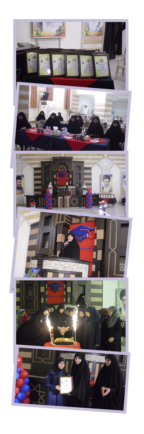 بحضور رئيسة جمعية مرشدات المهدي(عجّل الله فرجه) القائدة زينب غندور وفي اجواء عيد الغدير الأغر أقام فوج السيدة الزهراء(عليها السلام)/حارة صيدا في منطقة جبل عامل الثانية احتفال بالمناسبة المباركة كرّم خلاله الدليلات اللواتي نجحن في الامتحانات الرسمية لهذا العام بحضور ذويهن. الحفل استهل بمراسم تعظيم للقرآن الكريم تلاها كلمة الخريجات، وفي كلمة للقائدة زينب غندور باركت للدليلات تخرجهن وعايدت الجميع بأجواء عيد الولاية، قبل أن تشارك الدليلات تقطيع قالب حلوى النجاح وتوزع عليهن شهادات التقدير.