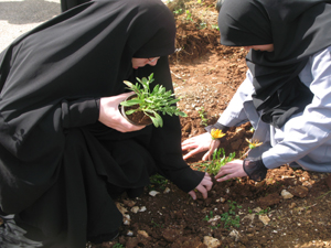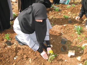 القائدات المشاركات قمن بزرع شتول و ورود في منطقة كفرجوز قضاء النبطية بمشاركة مسؤول في جهاد البناء قام بتدريب القائدات على كيفية غرس الشتول،