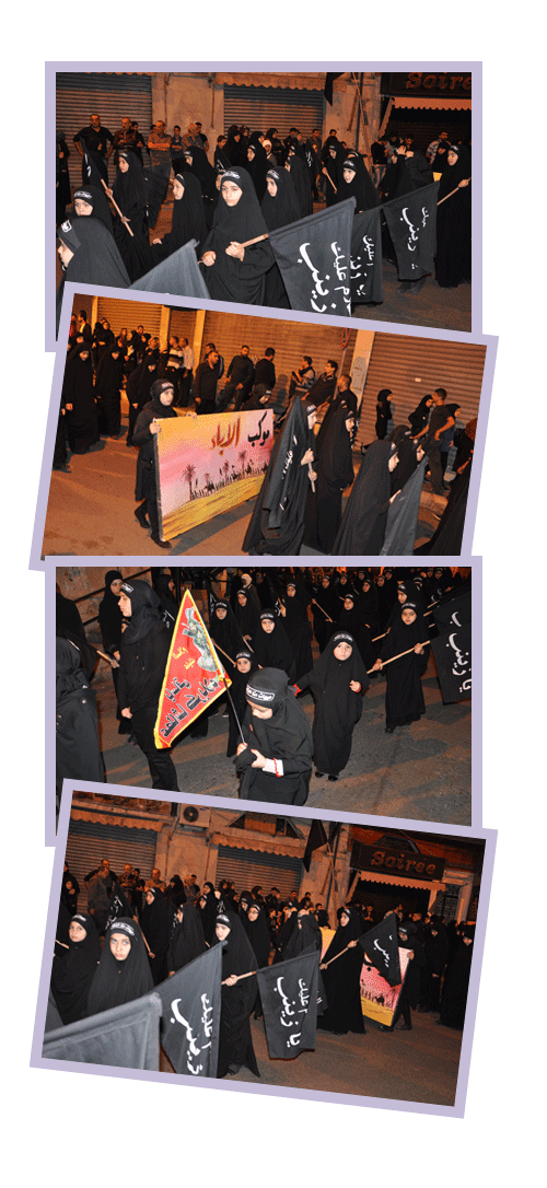 في ليلتها العاشورائية الأولى خرجت في مدينة النبطية في جبل عامل الثانية مسيرة زينبية شاركت بها كشفيات قطاع الإمام الحسين(عليه السلام)/ النبطية.المسيرة التي تخرج يومياً لغاية العاشر من محرم رفعت فيها الكشفيات الرايات السوداء وعصبن جباههن بشعار (يا حسين)، وارتفعت خلال المسيرة القبضات الزينية ورددت الشعارات الحسينية ونداءات التلبية.