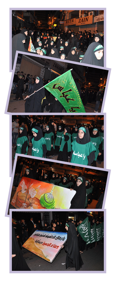 في ليلتها العاشورائية الخامسة خرجت مسيرة التلبية والولاء في قطاع الإمام الحسين(عليه السلام)/النبطية في جبل عامل الثانية بمشاركة أكثر من 200 زينبية عصّبن جباههن بشعارات عاشورائية وحملن الرايات ورددن الشعارات،المسيرة تخصص في كل يوم لبطل من أبطال كربلاء وفي ليلتها الخامسة خصّصت لأبي الفضل العباس (عليه السلام)،حيث ارتدت الفتيات الأكفان التي خط عليها عبارة (وا عباساه) إضافة الى المجسمات والشعارات التي رددت فداءً له ولكل أبطال كربلاء (عليهم السلام).