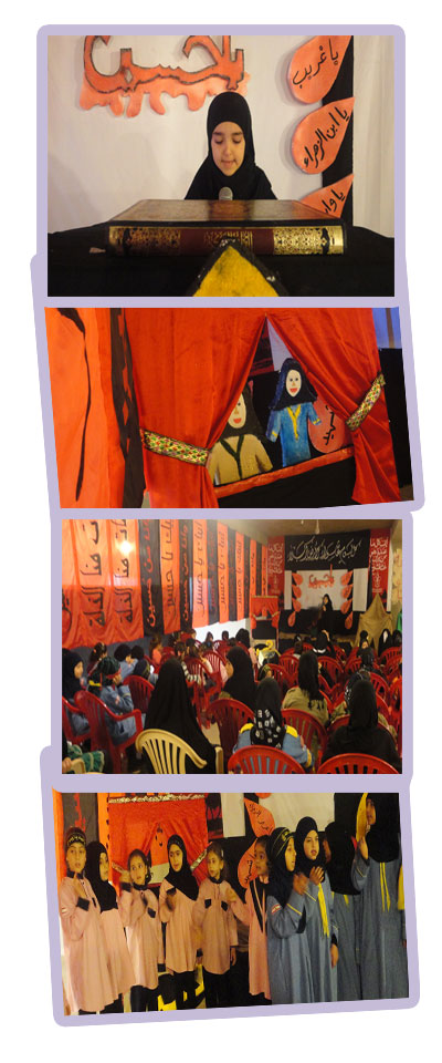 وهنا قمنا نجدد كربلاء .....في كل واد وجبل لبينا النداء لبيك يا حسين ها هو فوج السيدة نرجس _ قطاع القاسمية في مفوضيّة جبل عامل الأولى يجدد العزاء فمن فقرة تعظيم القرآن إلى مجلس حسيني لتستمع بعدها الزينبيات إلى قصة أم البنين مع مسرح الدمى وبعدها لطمن الصدور فالعهد عهد الله والوعد وعد الله.
