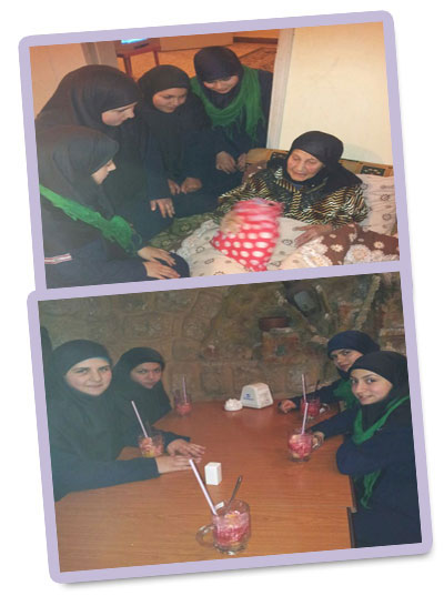 بزيارة إلى عجوز في البلدة تحمل إسم الحوراء زينب (عليها السلام) ،وقدمن لها هديّة