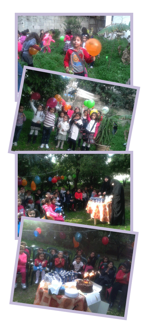 بمشاركة أكثر من 40 برعمة أقام فوج السيدة الزهراء(عليها السلام)/حارة صيدا في منطقة جبل عامل الثانية احتفالاً في أجواء ولادة السيدة زينب(عليها السلام) في حديقة الفوج التي ملأتها الزينة،وأقيمت للفتيات بعض الفقرات الفنية والترفيهية،وحول قالب زيّن بالشموع اجتمعت أياديهن البريئة وقطّعت قالب حلوى الولادة.