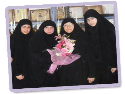 القائد الحاج عماد مغنية مقدمين لها باقة من الورود ليتعلمن منها معاني الصبر