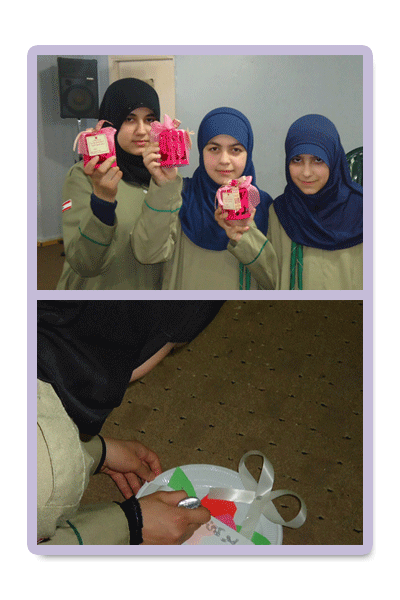أقام فوج ريحانة المصطفى(عليها السلام ) القطاع السادس مفوضية بيروت بحضور 7 مرشدات كشفيات يوم الجمعة في 21 أذار 2014 في القاعة الكشفية بمناسبة عيد الأم نشاط فني خاص بالأمهات وفي الختام تم توزيع هدايا للكشفيات لتقديمها لأمهاتهن في هذه المناسبة العطرة.
