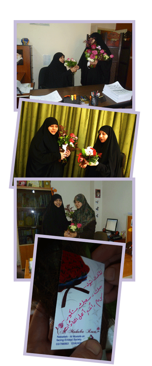في لفتة خاصة ومميزة منها، وفي أجواء الولادة العطرة لسيدة نساء العالمين (عليها السلام) والذي يصادف يوم القائدة،كرّمت مفوضة جبل عامل الثانية أخوات المفوضية ،حيث جالت على مكاتبهن وقدمت لكل منهن باقة ورود وبطاقة معايدة بالمناسبة المباركة.