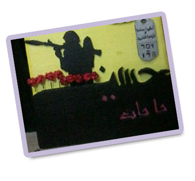 هل هلال الحزن وتفتحت معه الأفكار العاشوائية إستقبالا" لقافلة أبا عبد الله الحسين بلمسات فنية تضفي أجواء الحزن على مقر فوج الشهيدة بنت الهدى/ الحوش في قطاع صور _ مفوضيّة جبل عامل الأولى فكان من بين التحضيرات مجسم فلين يحاكي واقع الشهادة المستلهم من كربلاء.