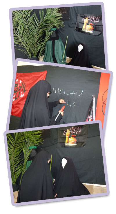تعمل قائدات فوج السيدة سكينة (عليها السلام)/برج رحال في قطاع القاسمية _ مفوضية جبل عامل الأولى على انهاء العمل في مكان الإحياء العاشورائي حيث لف بالسواد والشعارات الحسينية ونفّذت البانوراما بطريقة فنيّة مميّزة.