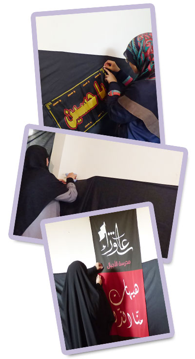أنهى فوج العقيلة (عليها السلام)/ بدياس في قطاع القاسميّة _ مفوضيّة جبل عامل الأولى العمل المجسّمات والمشاهد البانوراميّة الّتي تساعد على إضفاء أجواء الحزن وعلى توصيل ما جرى على السبط وأهل بيته (عليهم السلام) بأسلوب مميّز، كما لفّ مكان الإحياء بالسواد والإعلاميّات العاشورائيّة.