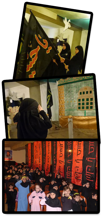 سيدي يا أبا عبدالله ... ها هن أنصارك في فوج السيدة نرجس (عليها السلام)/طيرفلسيه في القاسمية _ مفوضية جبل عامل الأولى قد بدأن الاحياء لليوم الأول بحضور 106 ملبيات لنداء لبيك يا حسين كما وأقيم فقرة تعظيم القران يليها نشيد الجمعية واستقبال راية الامام الحسين لتوضع على مجسم السيدة زينب بعدها وزعت الحصة الاعلامية ليضربن التحية للراية والمقام وبعدها مجلس مع لطمية يا حجة الله شكوانا اليك ....