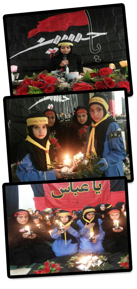 أحيى فوج السيدة نرجس/صديقين في قطاع قانا _ مفوضيّة جبل عامل الأولى يومه السابع بإقامة مأتم القاسم(عليه السلام) حيث لبت الفتيات نداء الإمام الحسين(عليه السلام) وتخلل البرنامج إلقاء شعر ،مجلس عزاء،إضاءة الشموع ونثر الورود .