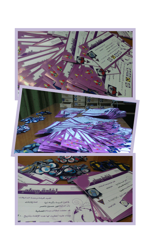 تعزيزاً لملف أوسمة الدليلات،وكهدية معنوية لدليلات المنطقة،وبدعم من مفوضية جبل عامل الثانية وبالتعاون مع جمعية كشافة الإمام المهدي(عجّل الله فرجه) وبمواكبة من امانة الدليلات في مفوضية المرشدات في المنطقة الثانية،قامت المفوضية بفتح المجال ومجاناً لفرصة تقديم طلبات أوسمة لكل دليلات المنطقة خلال فترة محددة جرى خلالها رفع اوسمة من كل وحدات دليلات المنطقة، حيث انجزت امانة الدليلات ادخال وفرز وطباعة ومنح 1300 وسام هواية وكفاية متنوعة العناوين،سيتم منحها للدليلات في العديد من اللقاءات والأنشطة.