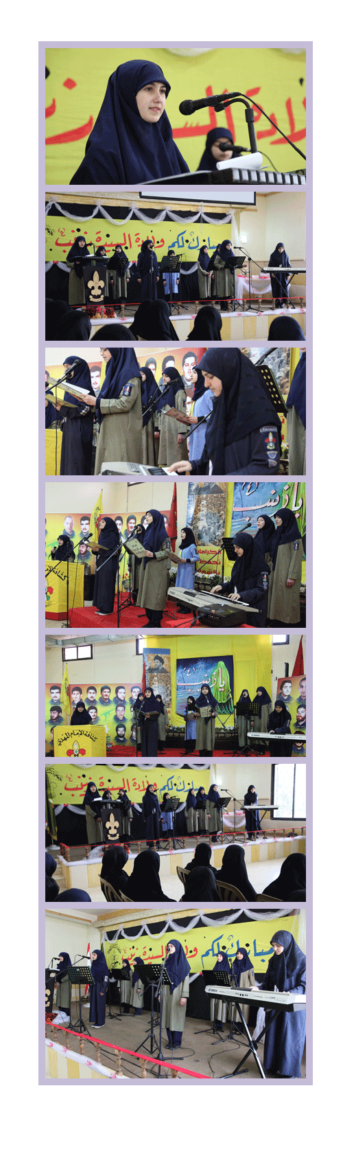 تُشارك فرقة نور الزهراء (عليها السلام) الإنشادية التابعة لمفوضية المرشدات في منطقة جبل عامل الثانية،بالعديد من الأنشطة واللقاءات والاحتفالات التي تُقام في اجواء الولادة المباركة والميمونة للحوراء زينب(عليها السلام) والذي يصادف يوم الدليلة الزينبية، وذلك بالتعاون مع جمعية كشافة الإمام المهدي (عجّل الله فرجه)،حيث تشارك الفرقة الإنشادية بفقرة فنية تقدّم خلالها بعضاً من أناشيدها بالمناسبة،خلال اللقاءات التي تقيمها مفوضية المرشدات للدليلات في كل القطاعات.