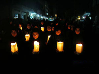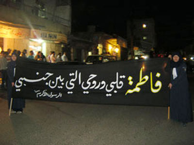 المسيرة الفاطمية أضيئت فيها الشموع والمشاعل التي احتضنتها أيادي الأطفال كما وحُملت فيها الرايات الحسينية والرايات السود والمصاحف المباركة والشعارات المناسبة ، وكان فيها لوحدة الدليلات الحصة الأكبر في إحياء الشهادة الفاطمية.