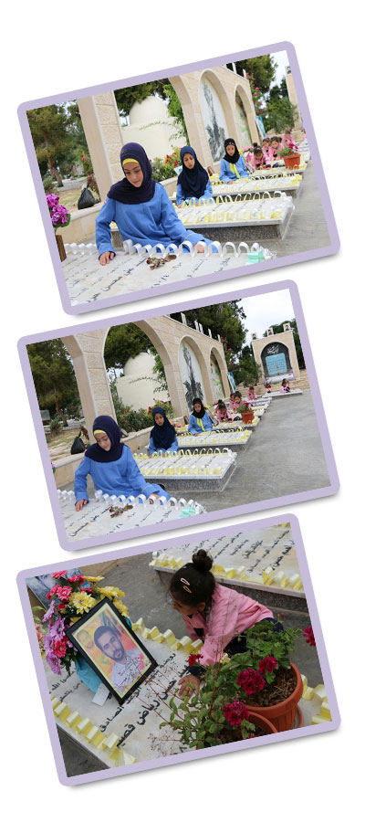 زار فوج السيدة نرجس (عليها السلام)/طيرفلسيه في قطاع القاسميّة _ مفوضيّة جبل عامل الأولى أضرحة الشهداء في ديرقانون النهر حيث أهدين أرواحهم سورة الفاتحة المباركة.