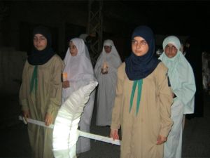 بالشموع و المشاعل و الهلال المضيئ، استقبل فوج مرشدات السيدة سكينة (ع) المروانية في المنطقة الثانية شهر رمضان المبارك بمسيرة كشفية جابت شوارع البلدة الرئيسية و أضاءت عتمتها جراء انقطاع التيار الكهربائي ..المسيرة التي شاركت فيها 50 كشفية سارت في مقدمتها زهرات و مرشدات يحملن الرايات الكشفية ، سارت خلفهن فرق اللباس الملائكي يحملون الشموع و المصاحف و الافتات المرحبة بالشهر الفضيل أعاده الله علينا و عليكم و بالخير و البركة .