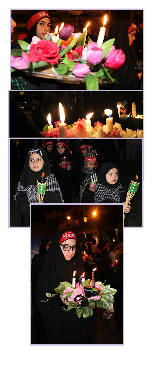 جددت الزينبيات في قطاع الإمام الحسين (عليه السلام)/ النبطية في مفوضية جبل عامل الثانية البيعة والولاء لسيد الشهداء (عليه السلام) وسرن في مسيرة الليلة التاسعة من محرم في المدينة، حملن خلالها الورود والشموع والرايات العاشورائية، ولبسن الأكفان والعصبات الحسينية، ورددن شعارهن الدائم (هيهات منا الذلة).