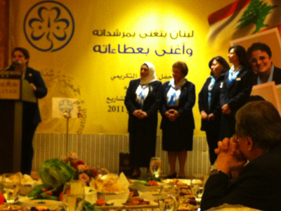 على وقع النشيد الوطني اللبناني ورسائل الشكر والتبجيل، كرّمت جمعية مرشدات المشاريع رئيسة الجمعية العالمية للمرشدات نادين العشّي رئيسة الاقليم العربي للمرشدات نورا جارودي في حفل غداء ضمّ أسرة المرشدات من كافة الجمعيات، فضلاً عن ممثلي بعض الجمعيات الكشفية.