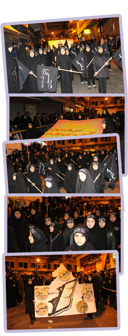 شاركت مرشدات مدينة النبطية في المنطقة الثانية،بالمسيرة الليلية التي أُقيمت بالأمس نصرةً للإمام الحسين"عليه السلام"..المسيرة التي جابت شوارع النبطية،شاركت فيها فرق الزينبيات بلباسهن الأسود التام وعصباتهن التي حملت شعار"ياحسين"، وتقدمت المسيرة راية كبيرة مثّلت الكساء اليماني كما حُفر عليها، تبعتها فرق حملت الرايات الزينبية والمجسمات وفرق السبايا..هذا وتشهد يومياً مدينة النبطية مسيرة نصرة للإمام الحسين"عليه السلام"تشارك فيها مرشدات النبطية..