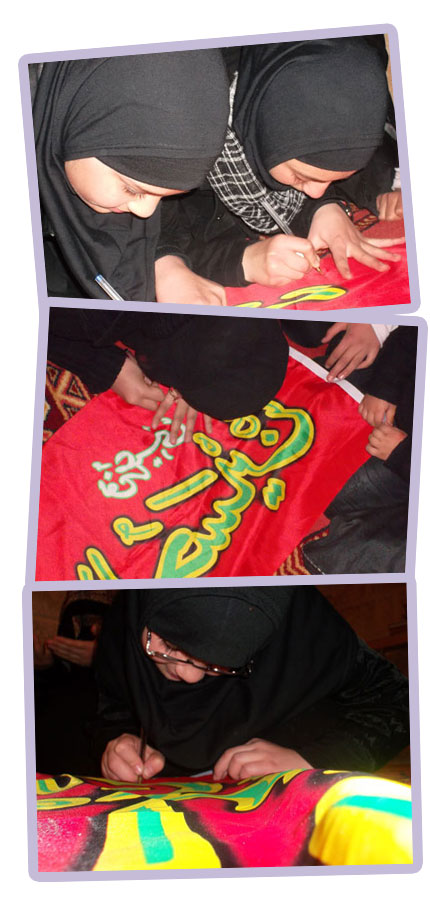 و ستكمل الراية رحلتها مع تواقيع الفتيات لحين توافر وصولها إلى الأماكن المقدسة في كربلاء..