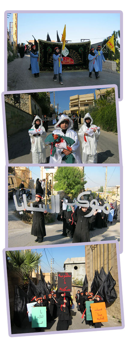 سارت في بلدة النميرية في جبل عامل الثانية مسيرة زينبية علت فيها القبضات الزينبية و النداءات و التلبية،المسيرة التي اخترقت أزقة البلدة تقدمتها ثلاث فتيات باللباس الملائكي الأبيض تحمل كل منهن مجسم للطفل الرضيع و السهم نابت منه..