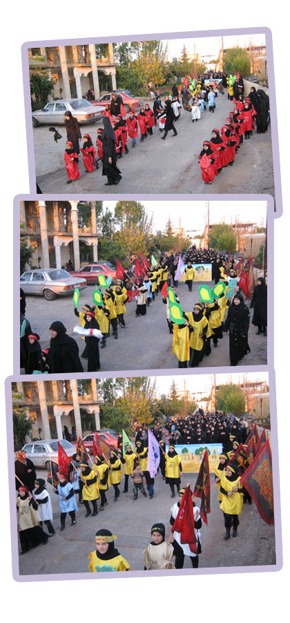 بألوان البطولة الكربلائية، رسمت المرشدات في بلدة بريقع في المنطقة الثانية المسيرة الزينبية التي خرجت فداء لأبي عبدالله الحسين(عليه السلام)..