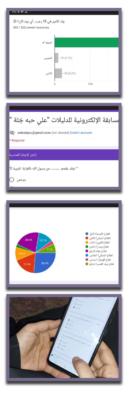 الإمام علي (عليه السلام) أرسلت المسابقة الكترونيا لتشارك بها 321 دليلة من قطاعات المفوضية وأجريت قرعة لأسماء المشاركات اللواتي أعطين الجواب الكامل عن كل الأسئلة.
