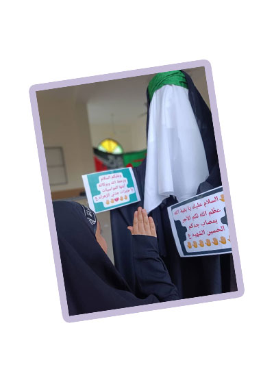 بقلوب ملؤها الحب والمواساة وحناجر تهتف باسم الحسين عليه السلام شاركت مرشدات فوج رياحين المهدي عجل الله فرجه / ديرانطار في إحياء اليوم السادس الذي عاهدت فيه المرشدات الشهداء الذين مضوا على طريق علي الاكبر بأن تبقين على نهجهم الذي هو نهج ابي عبدالله الحسين وتوالت الفقرات التي تحاكي عاشوارء.. واختتم النشاط بحلقة لطم ودعاء الحجة .