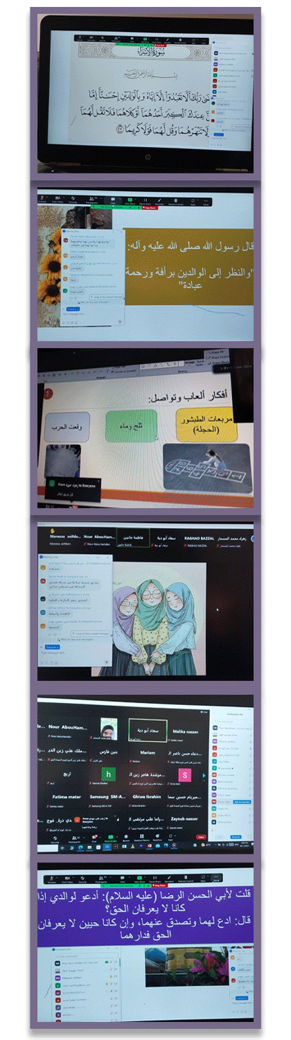 لقاء الكتروني لزهرات مفوضية البقاع.ندوة جوليت لو شهادة الامام زين العابدين عليه السلاماللقاء التقييمي السنوي - البقاع مفوضية بيروت اللقاء العاشورائي الخاص بالقطاع الرابع