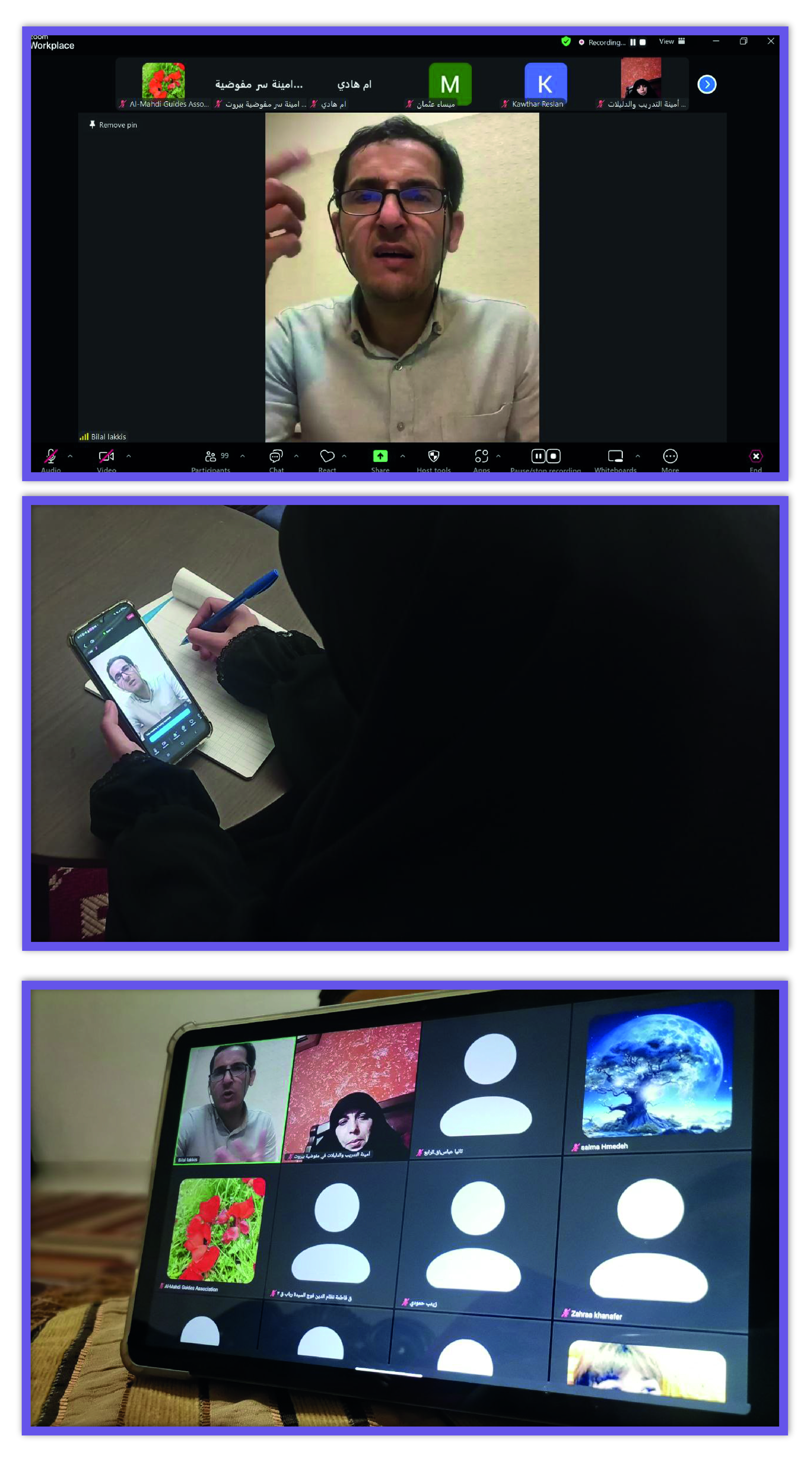 مرحلة التحولات السريعة كيف نفهمها وما هو دورنا فيها؟..عنوان اللقاء الذي جمعت فيه مرشدات بيروت الدكتور بلال اللقيس مع اكثر من 100 أخت على التطبيق الافتراضي زووم.