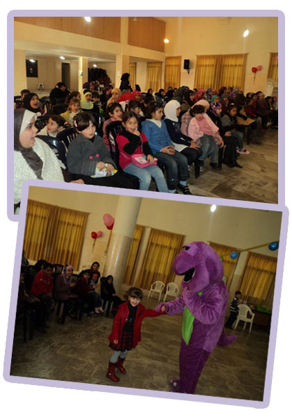 الحفل الذي حضرته شخصيات كرتونية تخلله العديد من الفقرات كالمنبر الحر للأطفال وأناشيد استعراضية و مولد نبوي ومسابقات وألعاب،وزعت الشخصية الكرتونية البنفسجية في نهايته الألعاب على كل الأطفال الموجودين..