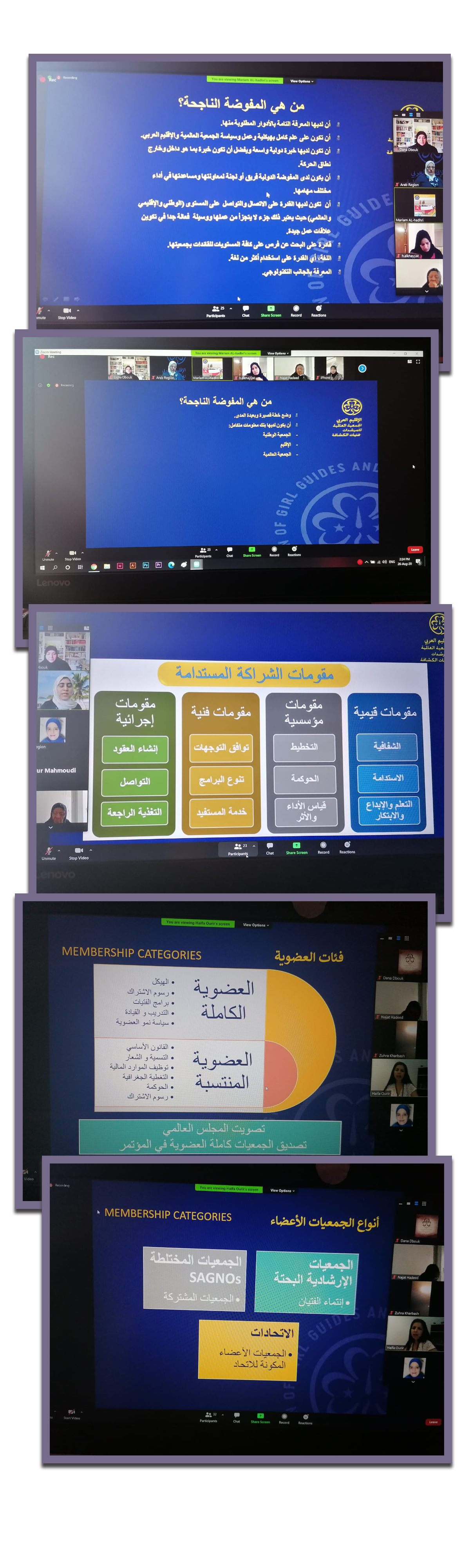 نظّمت منطقة الإقليم العربي في الجمعية العالمية للمرشدات وفتيات الكشافة الدورة التدريبية الثانية للمفوضات الدوليات على مدى يومين، حيث شاركت عن جمعيّة مرشدات المهدي (عجل الله تعالى فرجه)، المفوّضة الدولية القائدة دانه دبوق.