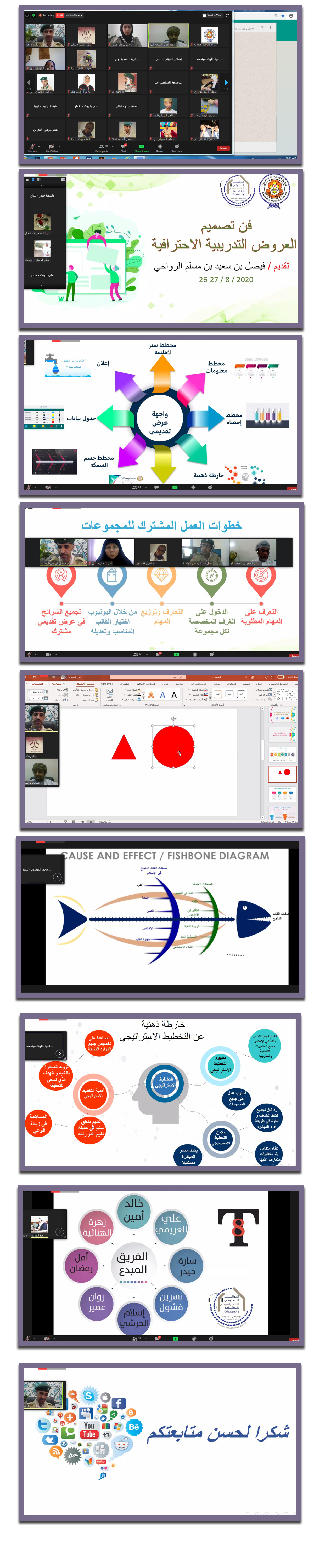 شاركت جمعيّة مرشدات المهدي (عجل الله تعالى فرجه الشريف) في ورشة فن تصميم العروض التدريبية الاحترافية التي نظمتها جمعية مرشدات عمان خلال يومي الأربعاء 26 والخميس27 آب 2020. وقد مثّلت الجمعية كل من القائدة أمل رمضان والقائدة باسمة حيدر على مدار ساعتين يومياً.