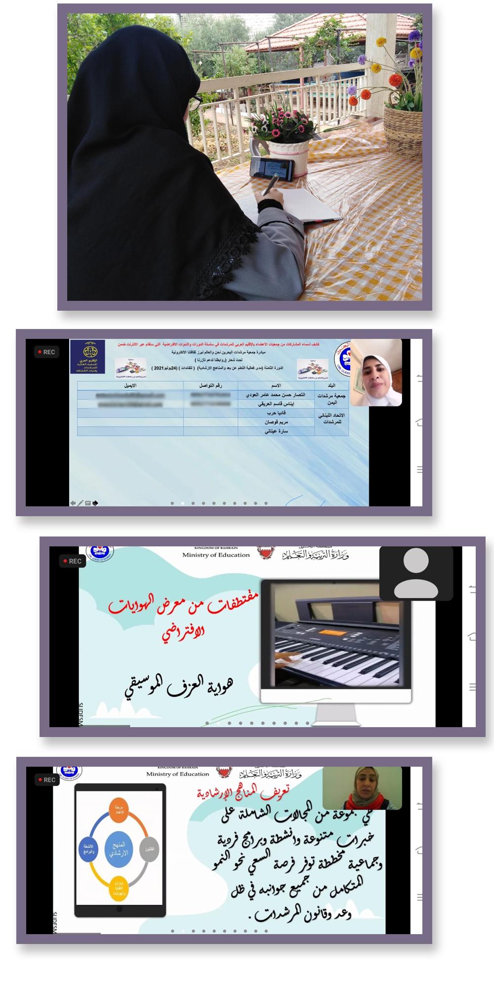 ضمن فاعليات الأنشطة الصيفية الالكترونية العربية، شاركت جمعية مرشدات المهدي (عجل الله فرجه) في الورشة التدريبية التي أقامتها جمعية مرشدات البحرين بالتعاون مع الإقليم العربي في الجمعية العالمية للفتيات ومرشدات الكشافة بعنوان "مدى فعاليّة التعليم عن بُعد والمناهج الإرشادية"، وذلك بتاريخ 23 تموز 2021.