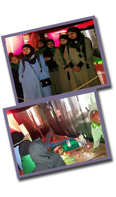 في أجواء الأربعين تعرفت زهرات ومرشدات فوج سيدة نساء العالمين (عليها السلام)/ عيناتا في قطاع بنت جبيل _مفوضيّة جبل عامل الأولى على الركب الحسيني عبر زيارتهن للبانوراما العاشورائية التي يقيمها فوج حاريص.