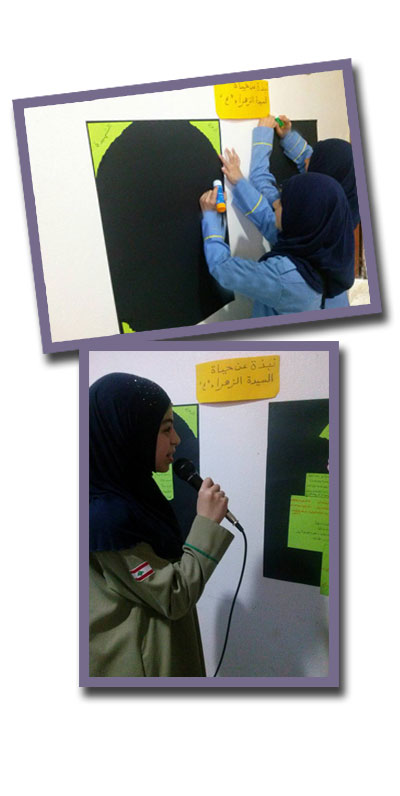 إحياءا للأيّام الفاطميّة، نفّذت زهرات ومرشدات فوج السيّدة نرجس/ الجميجمة في قطاع الأوسط _ مفوضيّة جبل عامل الأولى لوحة حائط تضمّنت معلومات عن شخصيّتها وحياتها (عليها السلام).