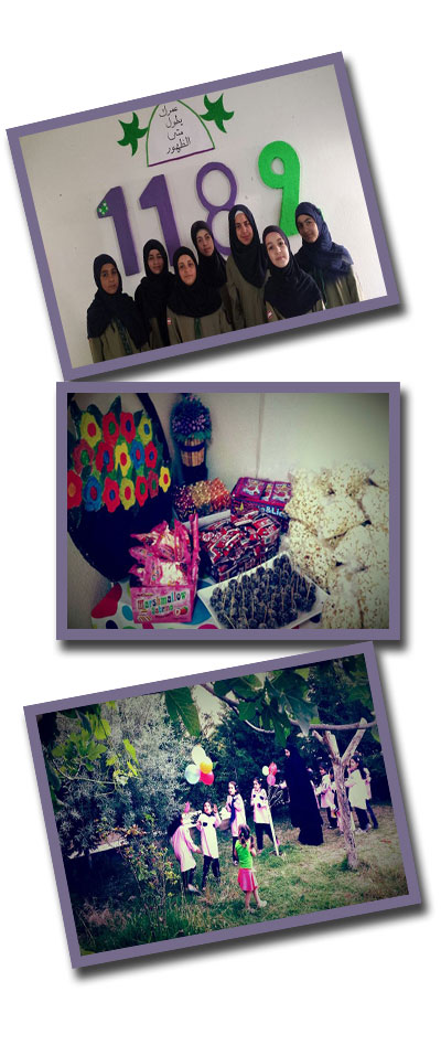 بمناسبة ولادة آخر الأئمة المهدي المنتظر (عجّل الله تعالى فرجه) أقام فوج السيدة نرجس/الجميجمة في قطاع الأوسط – مفوضيّة جبل عامل الأولى انشطة متنوعة من تزيين للمقر وزراعة بعض المزروعات خارج المقر إضافة إلى بعض الأناشيد والمسابقات الشيقة مع توزيع للحلوى والهدايا.