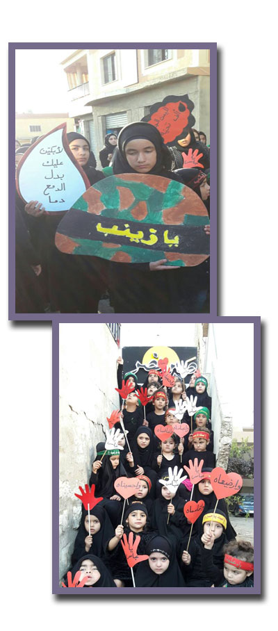 أحيا فوجي بنت الهدى/شقرا و فوج السيدة نرجس (عليها السلام)/الجميجمة في قطاع الأوسط اليوم الثامن من أيام محرم الحرام بمجالس حسينيّة تخللها العديد من الفقرات كما كان لهم وقفة تضامنية مع أطفال اليمن.